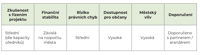 - Plná kontrola města nad projektem.